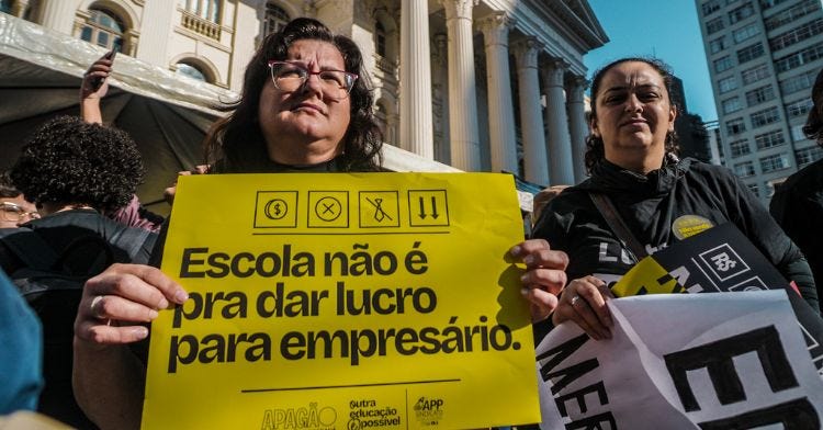 O educador destaca que, assim como ocorre com muitos veículos híbridos, a promessa de um funcionamento perfeito não se concretizou também nas nossas escolas privatizadas. “Vemos falhas graves na gestão e as consequências podem ser irreversíveis, prejudicando estudantes, comunidades, servidores, empregados destas empresas”, alerta Luiz Fernando, que pergunta quem ganha com isso. “Não sou eu, servidor público da educação, não são os professores, não é a escola, não é o estudante. Quem ganha é a empresa, cujo objetivo não é de melhorar a educação, mas sim de lucrar seja qual for a situação”, responde o educador.