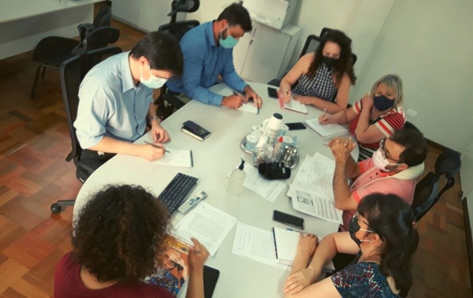 A Orientação Conjunta 010/2021, publicada no dia 10 de novembro, atribui aos(às) pedagogos(as) a organização do atendimento de estudantes prejudicados pela falta de professores(as) por meio de aulas e atividades, avaliação e recuperação de estudos.