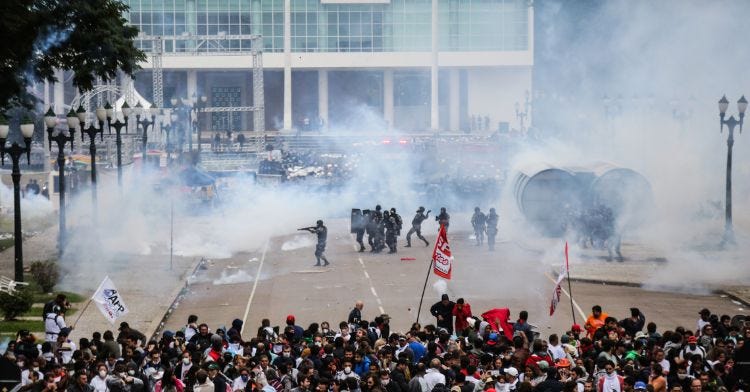 Ação policial contra manifestação pacífica deixou mais de 200 educadores(as) feridos(as) - Foto: Joka Madruga