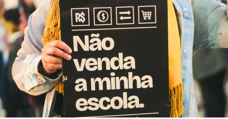 Movimento Não Venda a Minha Escola mobiliza as comunidades escolares contra o projeto que permite a privatização das gestão das escolas - Foto: Altvista / APP-Sindicato